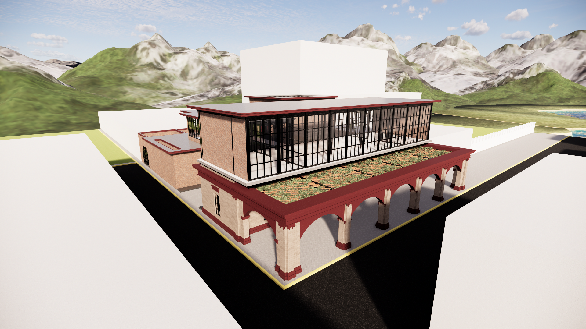 La propuesta combina materiales tradicionales como el adobe con sistemas contemporáneos de acero, generando un contraste que expresa el paso del tiempo. Esta dualidad permite conservar la memoria del lugar mientras se introduce un lenguaje arquitectónico actual.