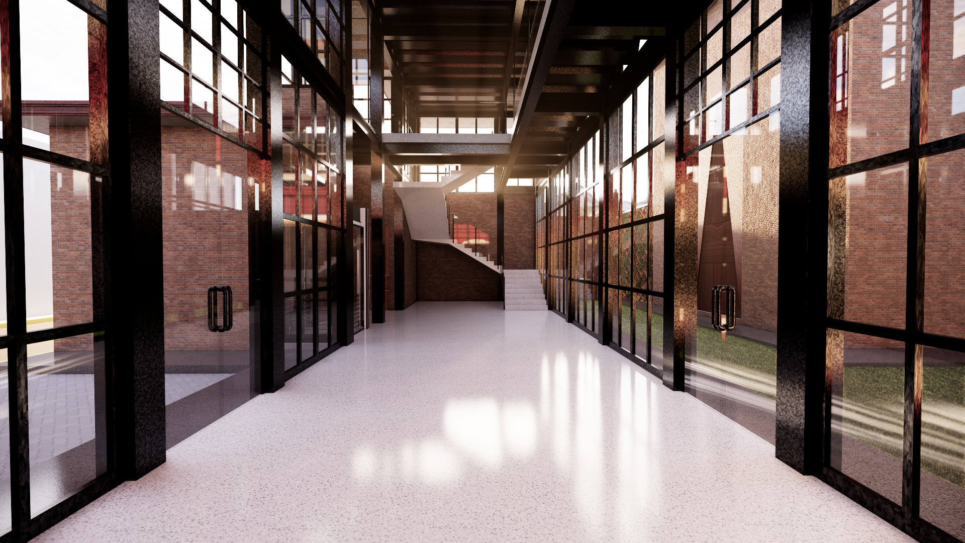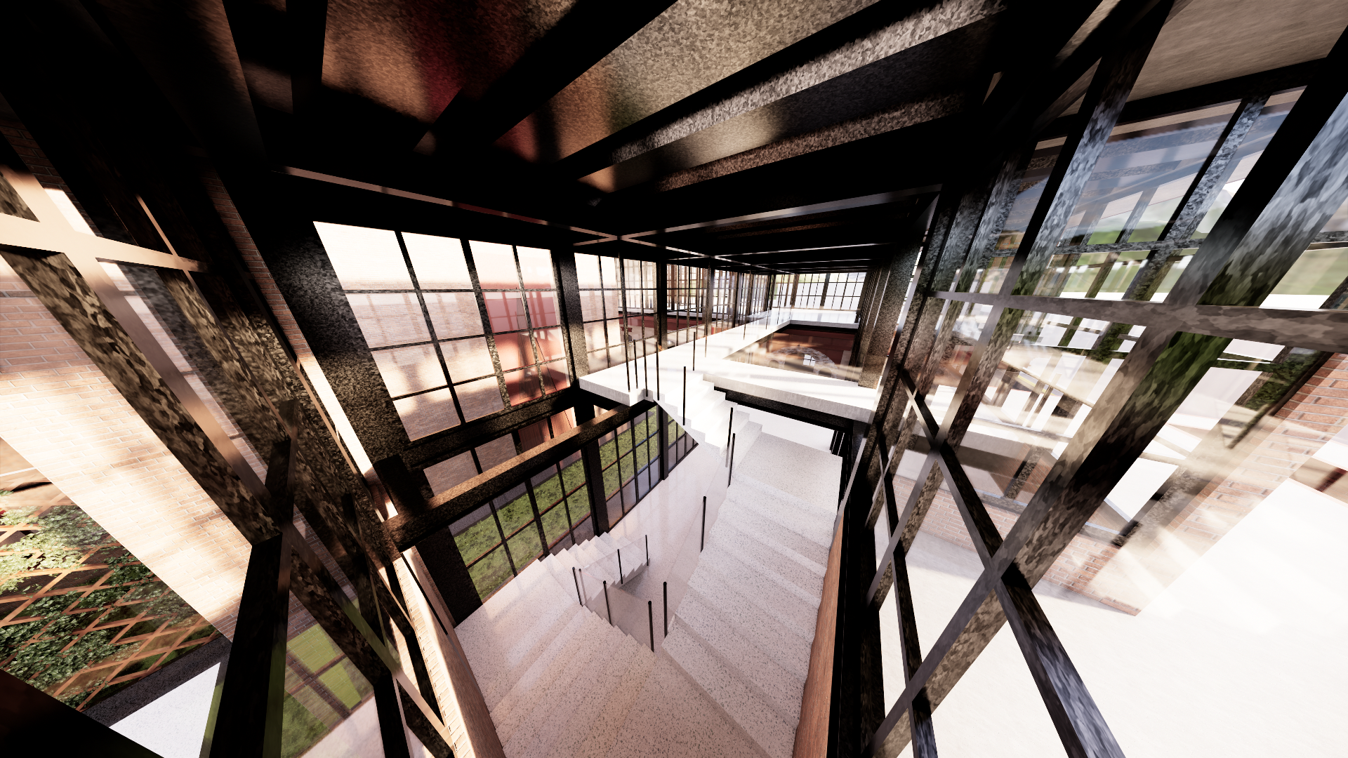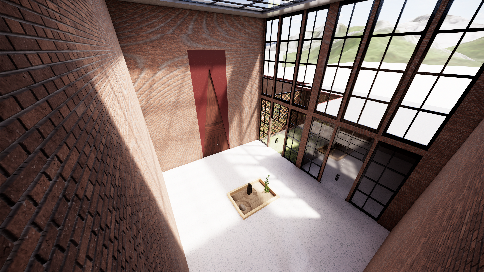 Se organiza en torno a una vestíbulo acristalado que articula las distintas funciones culturales, productivas y gastronómicas. A través de una secuencia de espacios abiertos y cerrados, se genera un recorrido que vincula talleres, galería, restaurante y áreas de convivencia.